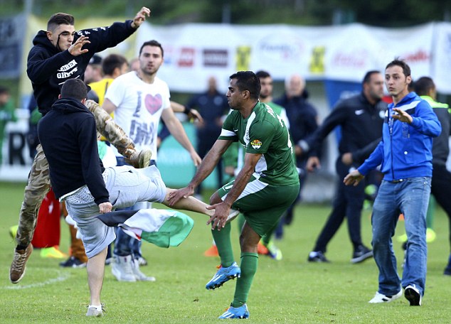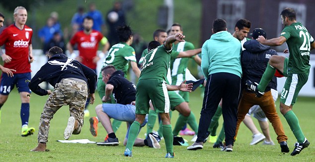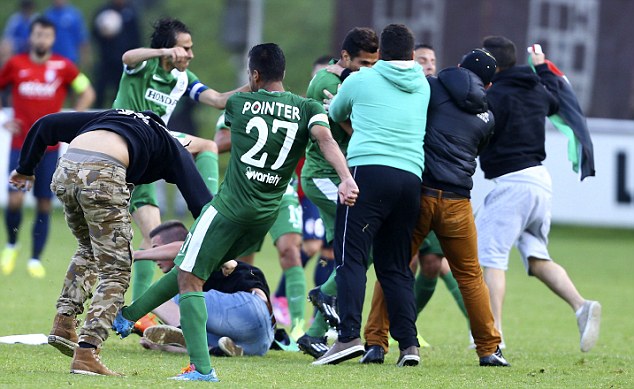 Τελικά με την επέμβαση της ασφάλειας του γηπέδου απομακρύνθηκαν οι εισβολείς, οι οποίοι όπως αποδείχθηκε ήταν τουρκικής καταγωγής.