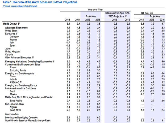 Το ΔΝΤ τοποθετεί στο +3,3% την παγκόσμια ανάπτυξη για το 2015, έναντι της πρότερης εκτίμησής του για ανάπτυξη +3,5%.